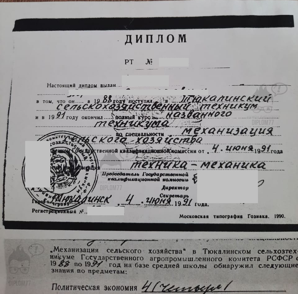 Вопрос: Здравствуйте! Интересует диплом техникума,желательно закрывшегося техническая специальность