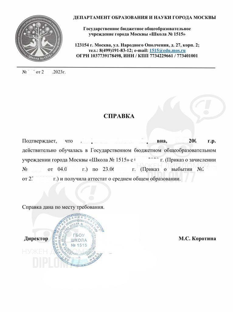 Ответ: Здравствуйте. Высылайте образец справки — сделаем такую же на ваши данные. От 10 000 рублей. Отправить информацию можно на WhatsApp +79052590480 или е-мейл zakaz@diplom77.com . Делается за 3-4 дня и плюс время доставки. Подробнее о вариантах оплаты и доставки здесь: https://diplom77f.cfd/dostavka